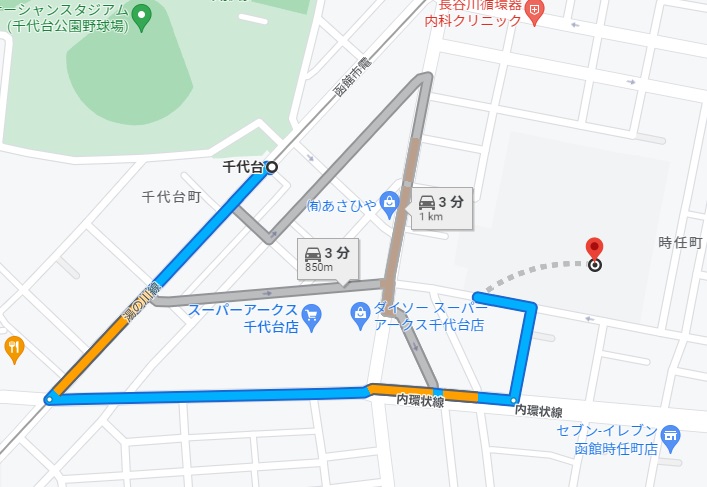●JR「函館駅」より函館市電に乗車し「千代台駅」で下車(乗車時間約20分)し徒歩約5分