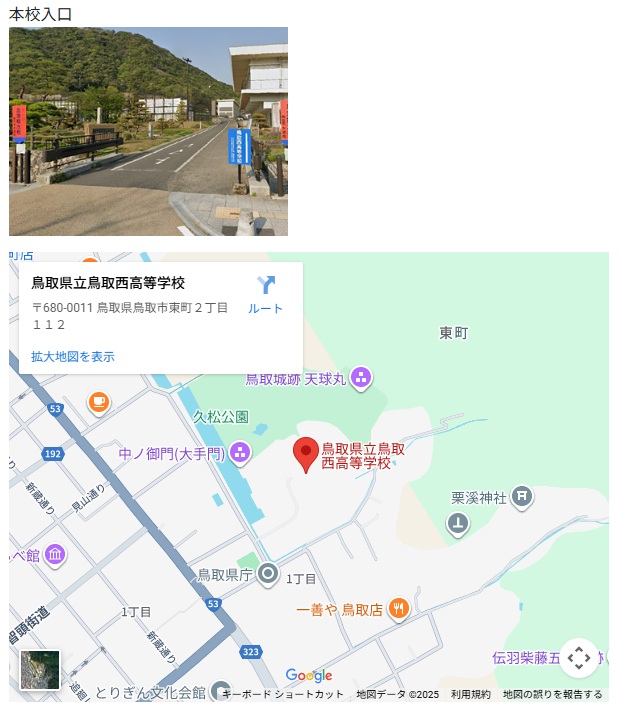 ●バスでお越しの場合:本校最寄りのバス停「県庁・日赤前」・「市立武道館」・「鳥取県庁」・「西町」