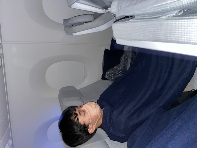 機内で、コンテストに向けて勉強する JPN1 新井君 |