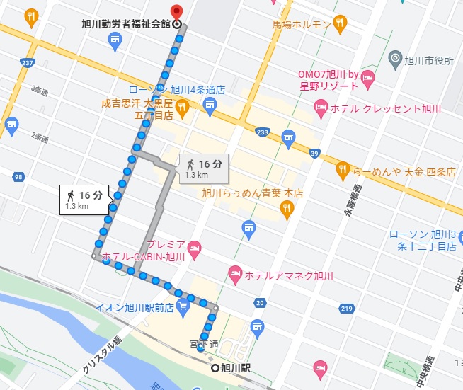 ●JR「旭川駅」から徒歩約20分