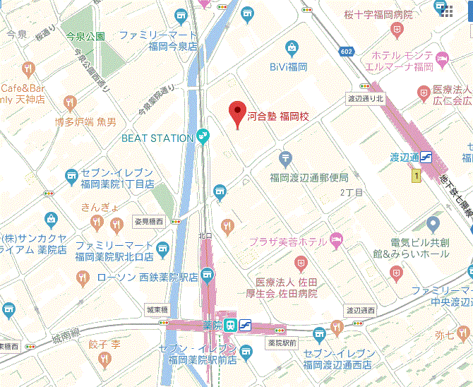 西鉄バス天神方面行「渡辺通2丁目」バス停から徒歩2分、